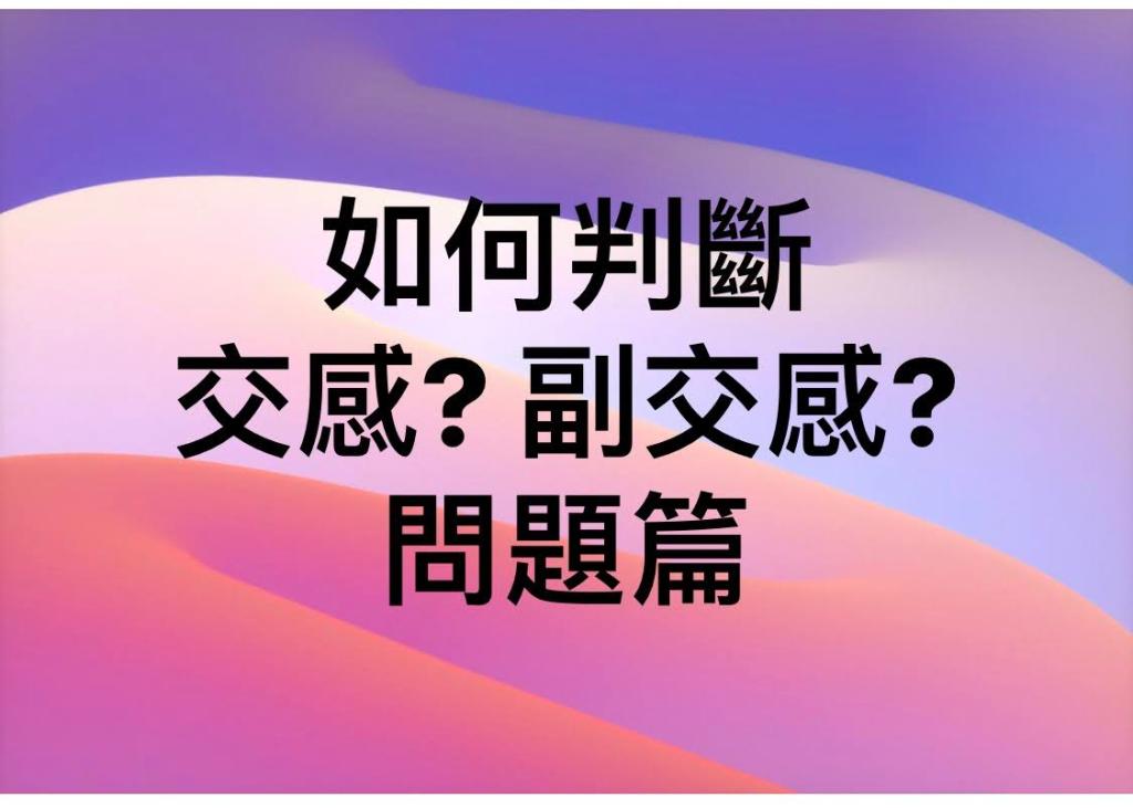 如何判斷活動屬於交感?副交感?問題篇 陳建銘中醫師2020 年 9 月 24 日2020 年 10 月 30 日自我覺察 文章分頁導航 上一個下一步 如何判斷活動屬於交感?副交感?問題篇.如果有人問你,「看電視」是屬於交感活動?還是副交感活動?你會怎麼回答呢?.A、看電視很刺激,屬於交感B、看電視很認真,屬於交感C、看電視很吵,屬於交感D、看電視可以很放鬆,屬於副交感E、我已經很久不看電視了F、其他.請作答。(參考格式:選項+一句話) 相關